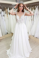 Brautkleid A-Linie Umgedrehtes Dreieck Durchsichtige Ärmel SchulterfreiDas Kleid war gut verarbeitet und kam innerhalb weniger Wochen an. Ich habe die Sondergröße bestellt, da ich klein und kurvig bin. Es hat sich absolut gelohnt. Das Kleid ist leicht und luftig. Der Kundenservice war ausgezeichnet.