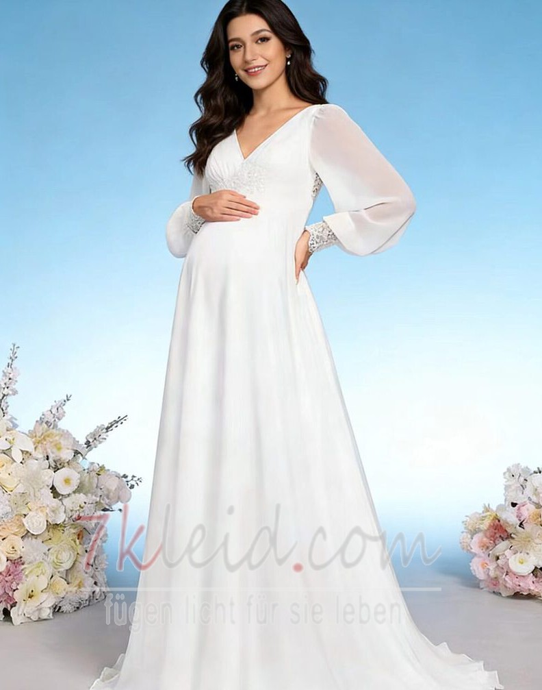 Brautkleid Strand Chiffon V-Ausschnitt Frühling Empire Taille #K2208609